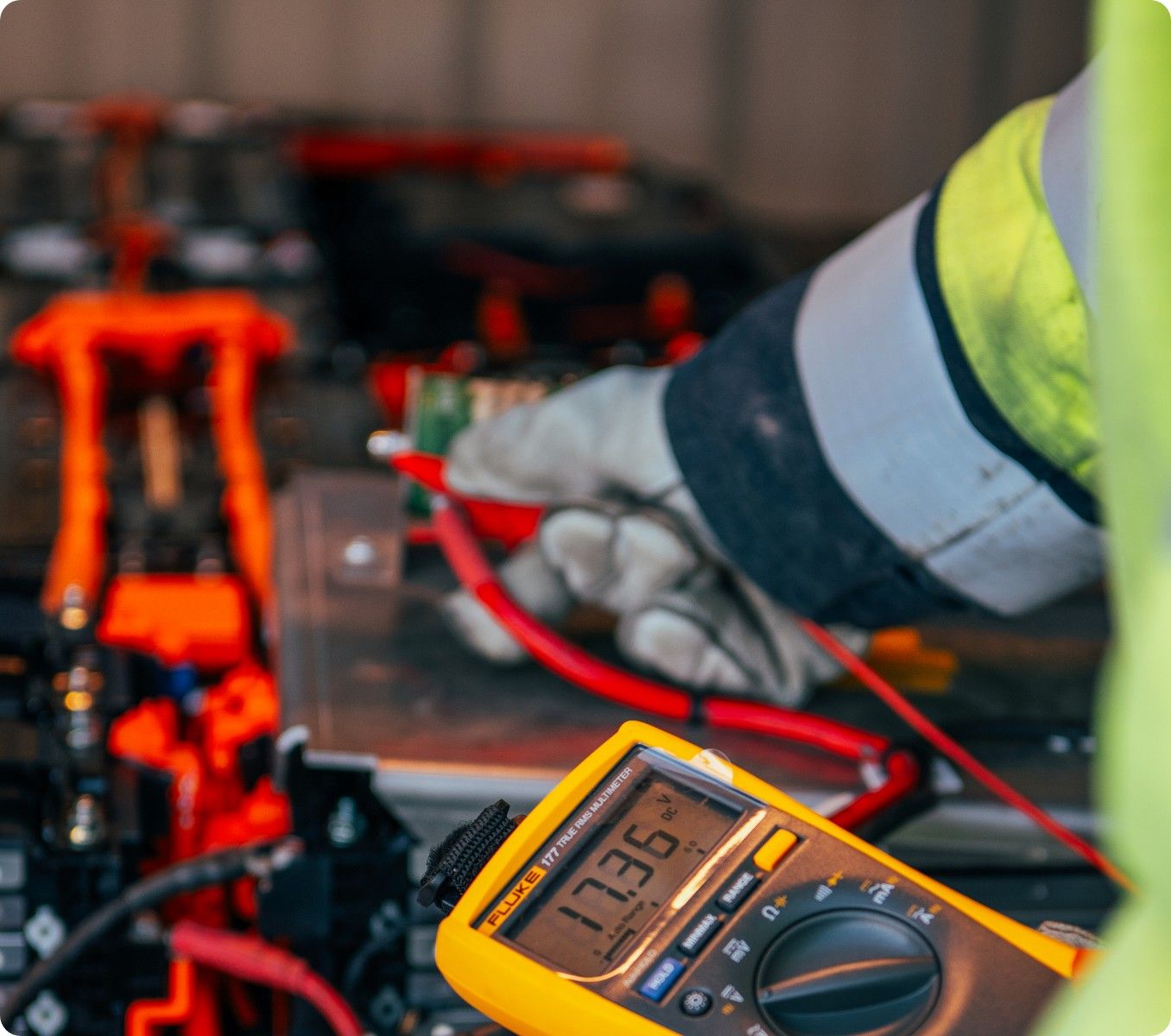 Batteriet klassifiseres deretter basert på et sett kriterier. Vurderingene våre inkluderer visuell inspeksjon, avlesning av batteristyringssystemet for å fastslå ladenivå, samt kontroll av isolasjonsegenskaper. Et infrarødt kamera brukes til kontinuerlig overvåking av varmeutvikling i batteriet og for å sikre jevn temperatur, slik at vi kan være sikker på at batteriet er trygt å håndtere videre.
