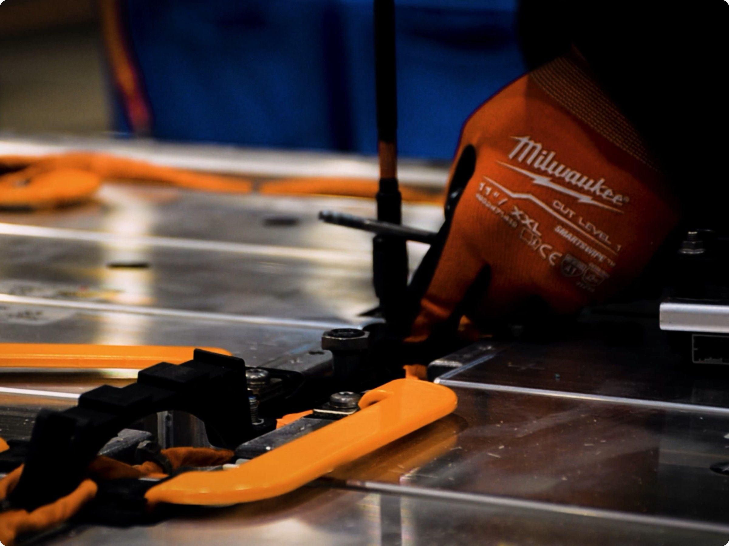 Etter utladingstrinnet anses batteripakken som trygg å demontere, og transporteres med AGV til demonteringsstasjonene. Demontering utføres manuelt ved hjelp av kraftassisterte verktøy, og alle komponenter som kabelstammer, rammer, plast og festemidler fjernes og samles i separate beholdere for resirkulering. Batterimodulene er nå rene og klare til å transporteres videre for knusing og sortering.